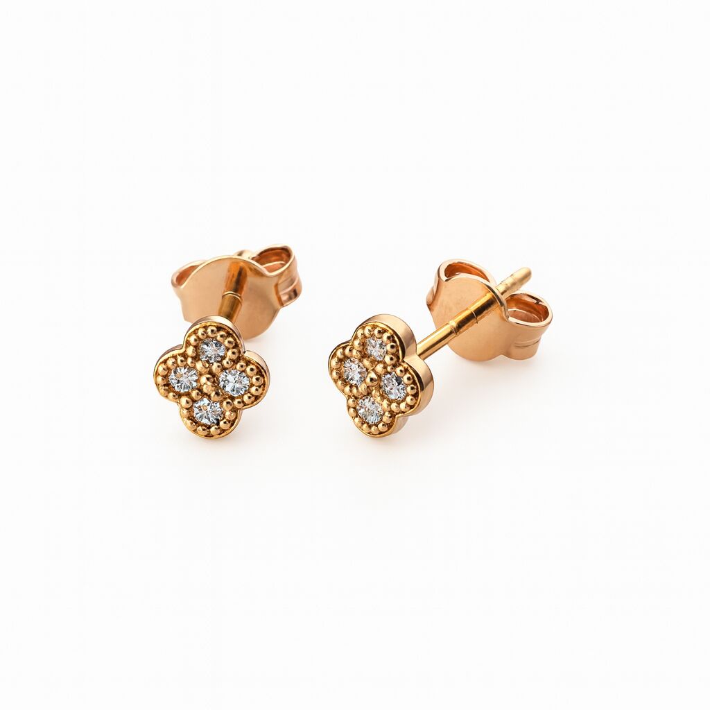 Boucles d'Oreilles Trèfle Or Rose et Diamants
