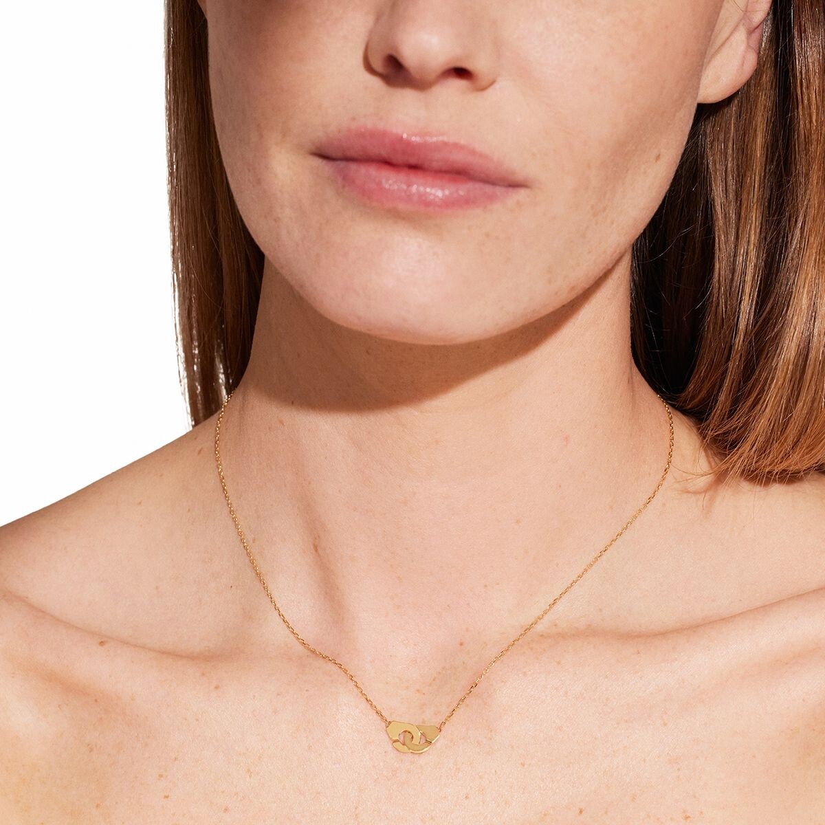 Pour fêter leurs 40 ans, les Menottes dinh van enlacées se réinventent dans une version plus aérienne avec chaîne forçat. Un collier fin en or jaune, symbole d'union représentant l'amour, l'amitié ou le lien.