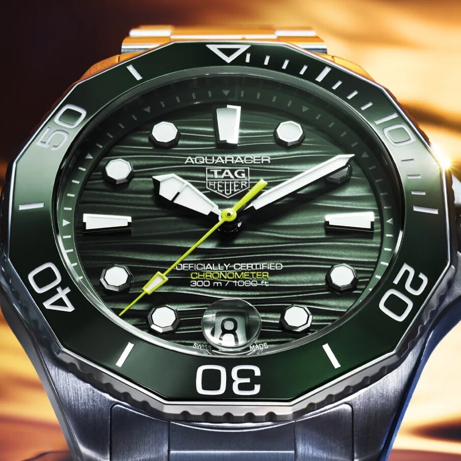 Ultra-lisible grâce à ses aiguilles et index remplis de Super-LumiNova®, le cadran vert profond au motif ondulé et l'aiguille des secondes d'un vert citron éclatant évoquent les mystères de l'océan.