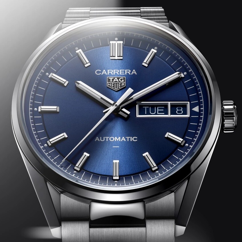 Découvrez la TAG Heuer Carrera Day-Date dans sa teinte bleue signature, animée par le mouvement TH31-02 pour une alliance parfaite entre performance et élégance. Avec sa finition brossée soleil, ce modèle iconique affiche un look intense.